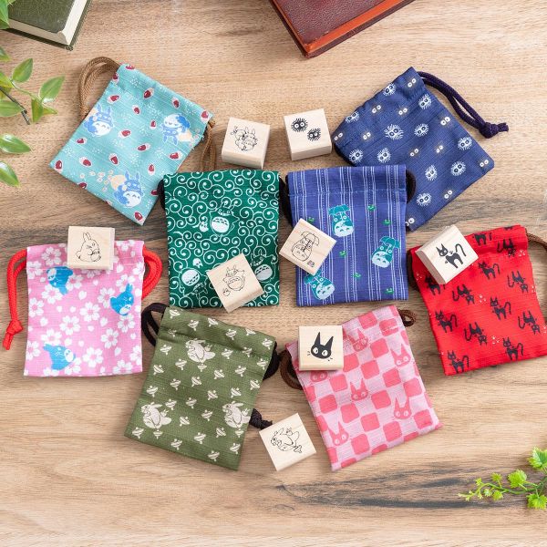 手掌大的束口袋裡有可愛的龍貓印章或吉吉的橡皮印章印章。